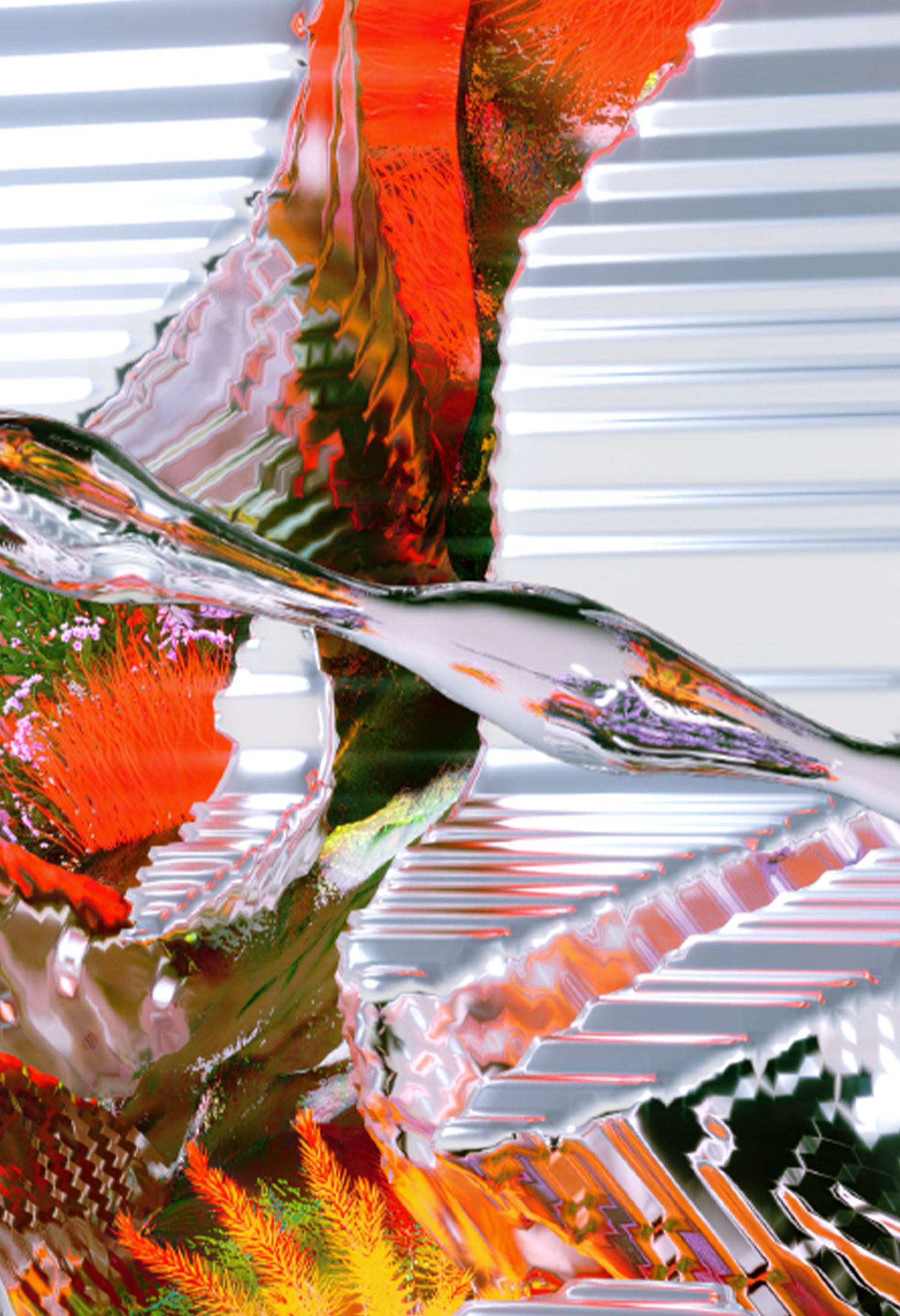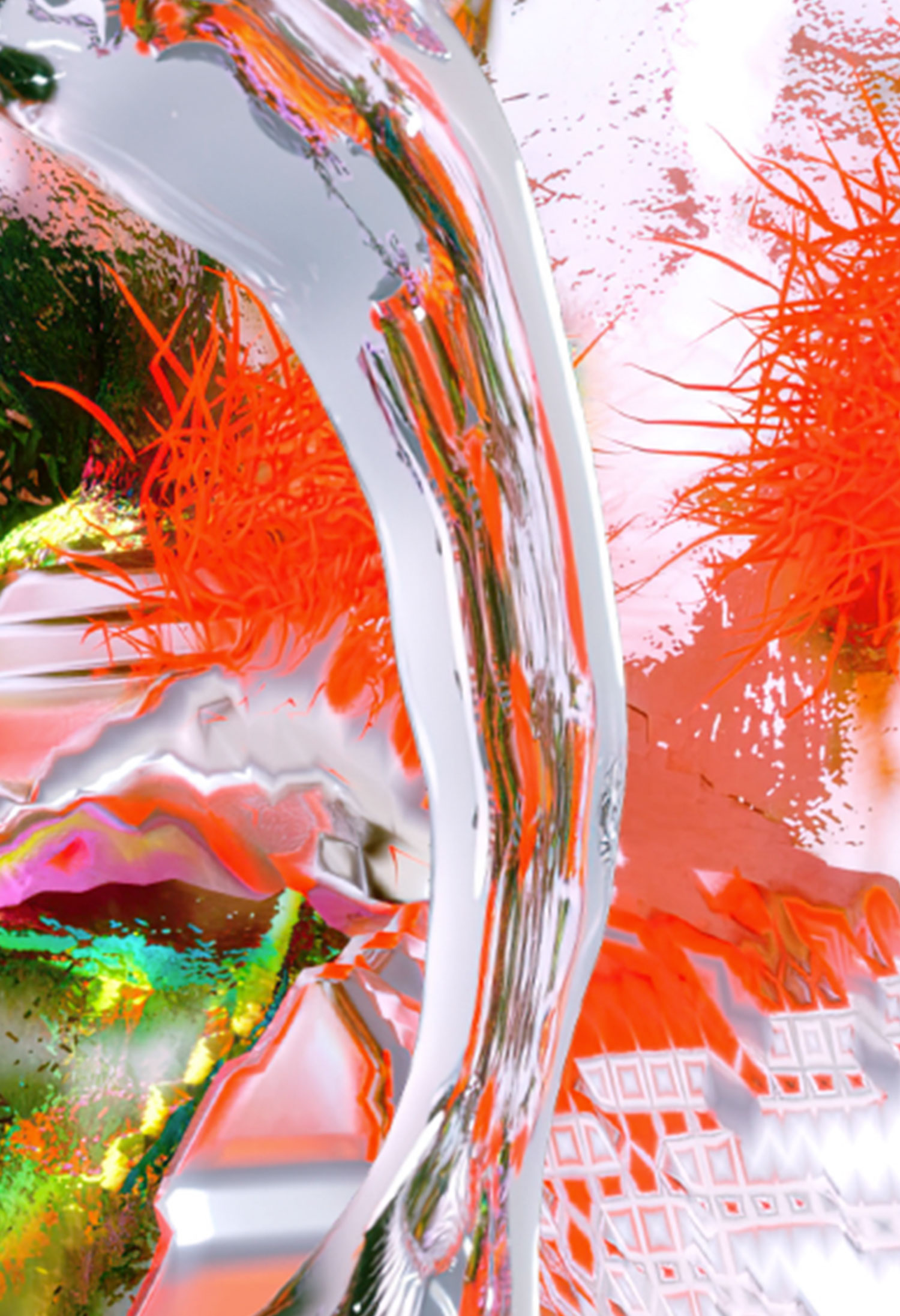 For this edition, Leeza imagined a fully-fledged universe, a physiological mirror of the festival and its symbolic renewal. It reveals a transparent fluidity evoking the Rhône and the Saône rivers, deconstructed metallic structures inspired by the hangars of Les Grandes Locos, and an organic—mineral and vegetal—nature that gradually reclaims the former industrial wasteland. A work that embodies the metamorphosis and creative energy of the festival.